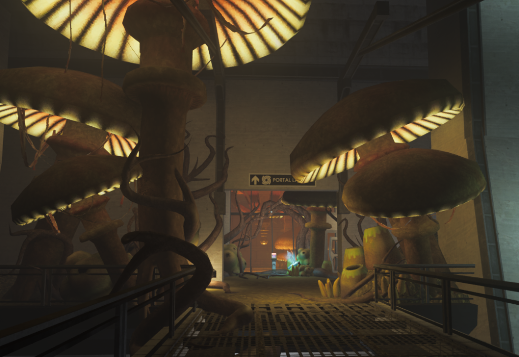 ポータル「The Mycofields」は胞子が舞う灼熱のエリア。快適に探索を行うためには防火スーツが必須となる。