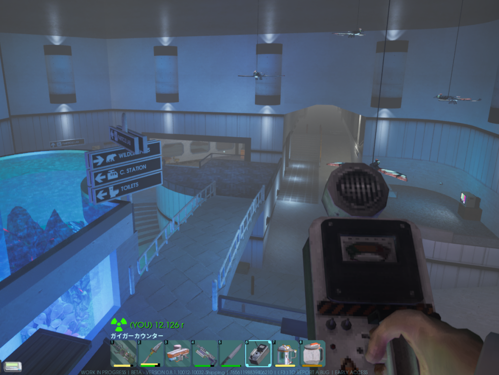 ガイガーカウンター (Geiger Counter) は、環境およびプレイヤーの放射線量を測定するために使用します。ガイガーカウンターを持つと、画面下にメーターが表示されます。モードを変更するには、左クリックを押します。