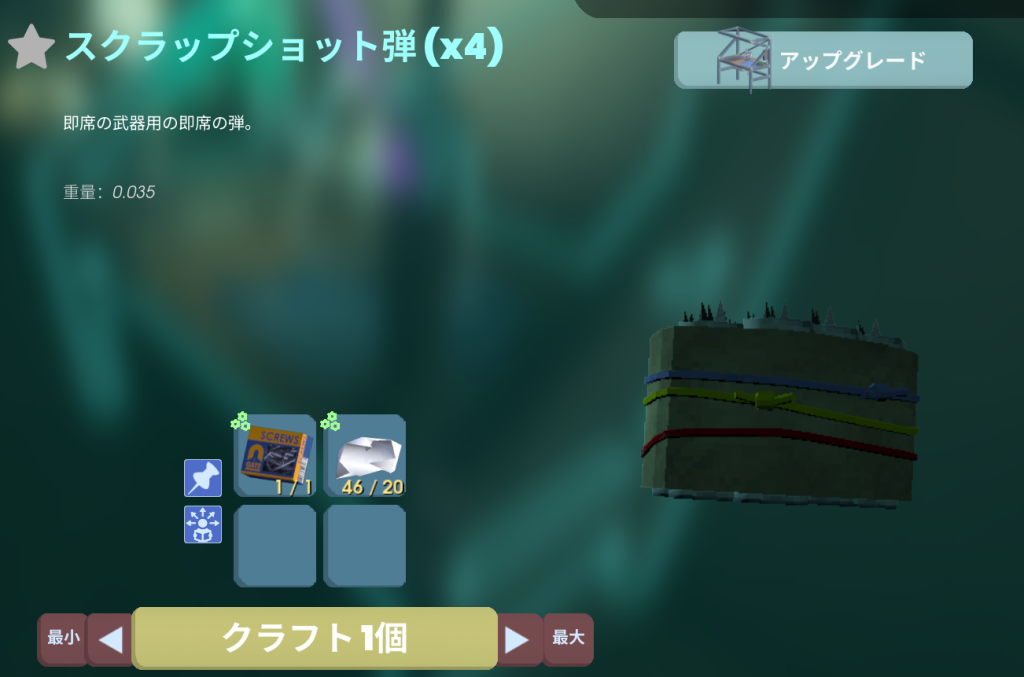 パイプピストルとスクラップショットで使用できる弾薬。使用するものは紙くずとネジという製作のハードルは比較的低いが、ネジは他のクラフトにも使用する頻度が高く、紙くずの必要個数が20と多いため、中盤辺りで安定して量産するのは少し苦しい。