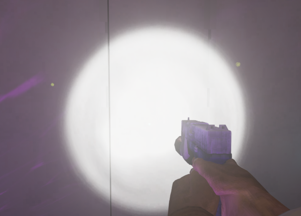 拳銃を構えていると、懐中電灯を持てなくなるため前が見えなくなってしまうが、これを使うことで前方を明るくできる。(Vキーで点灯)